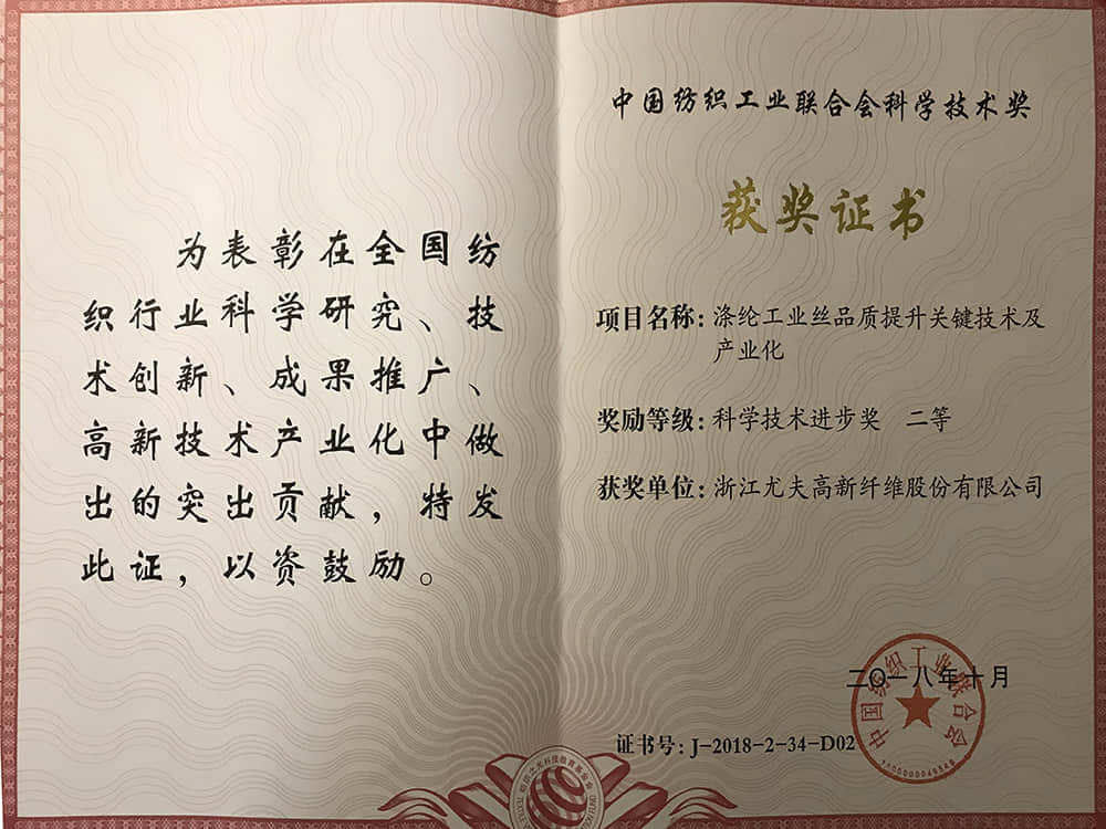 中國(guó)紡織工業(yè)聯(lián)合會(huì)科學(xué)技術(shù)獎(jiǎng)二等獎(jiǎng)2018.10